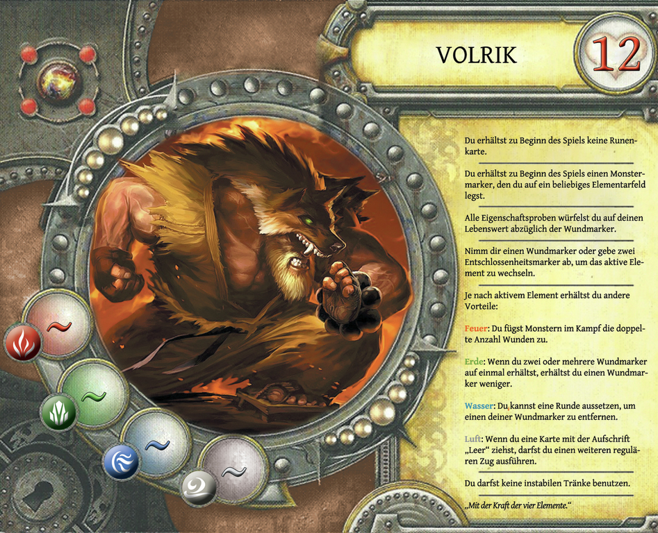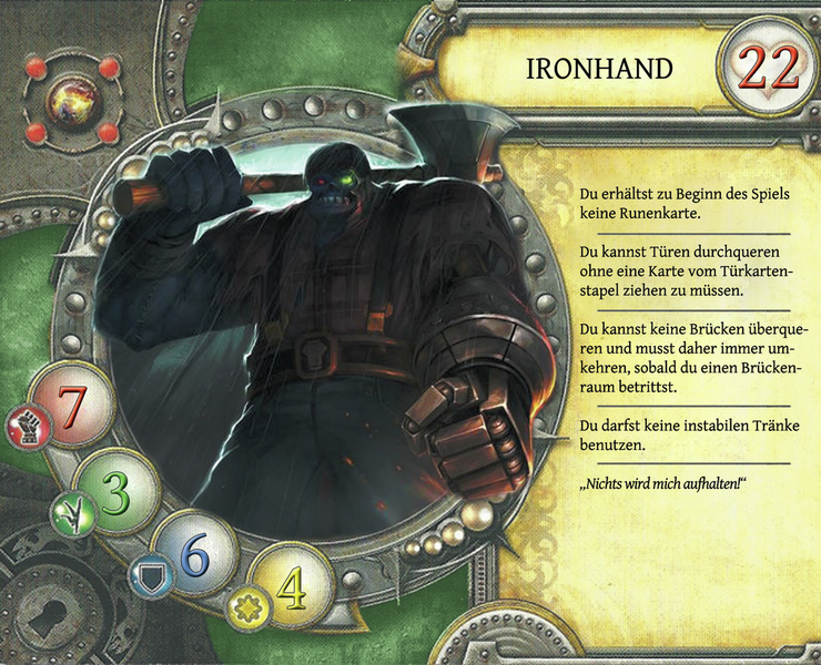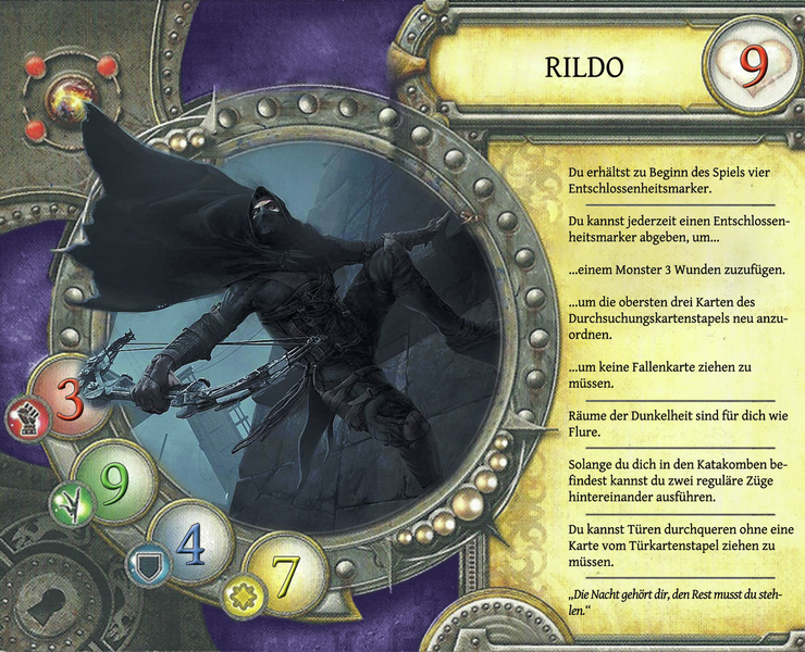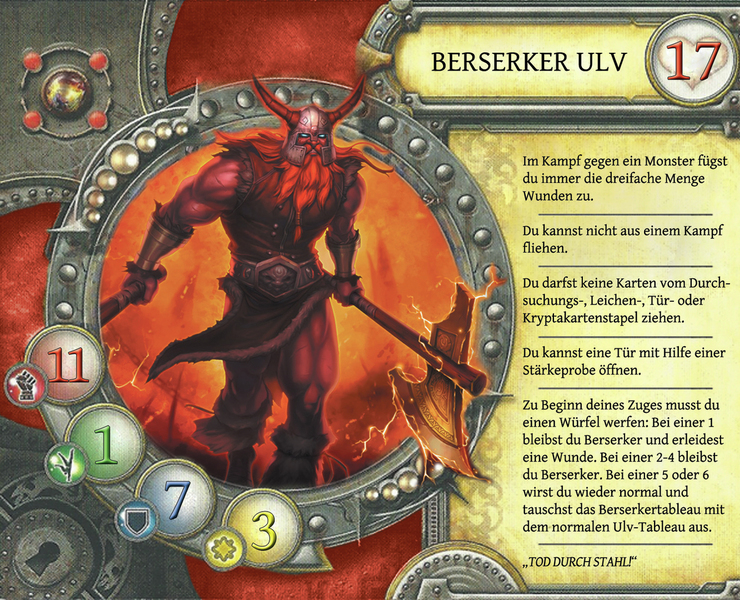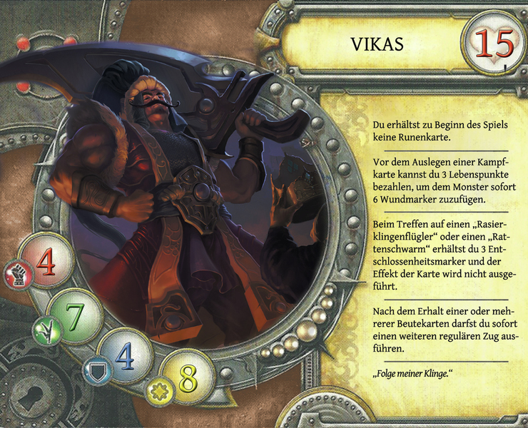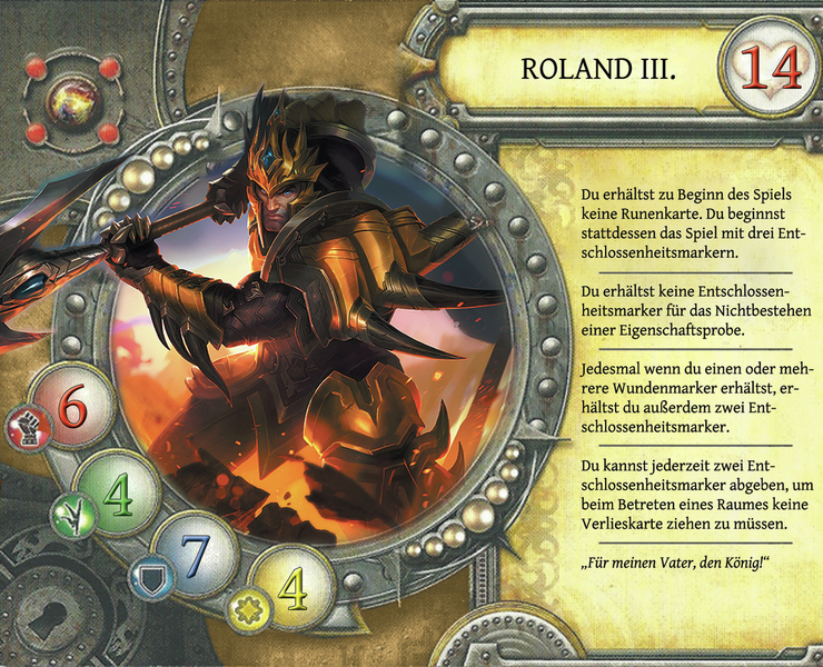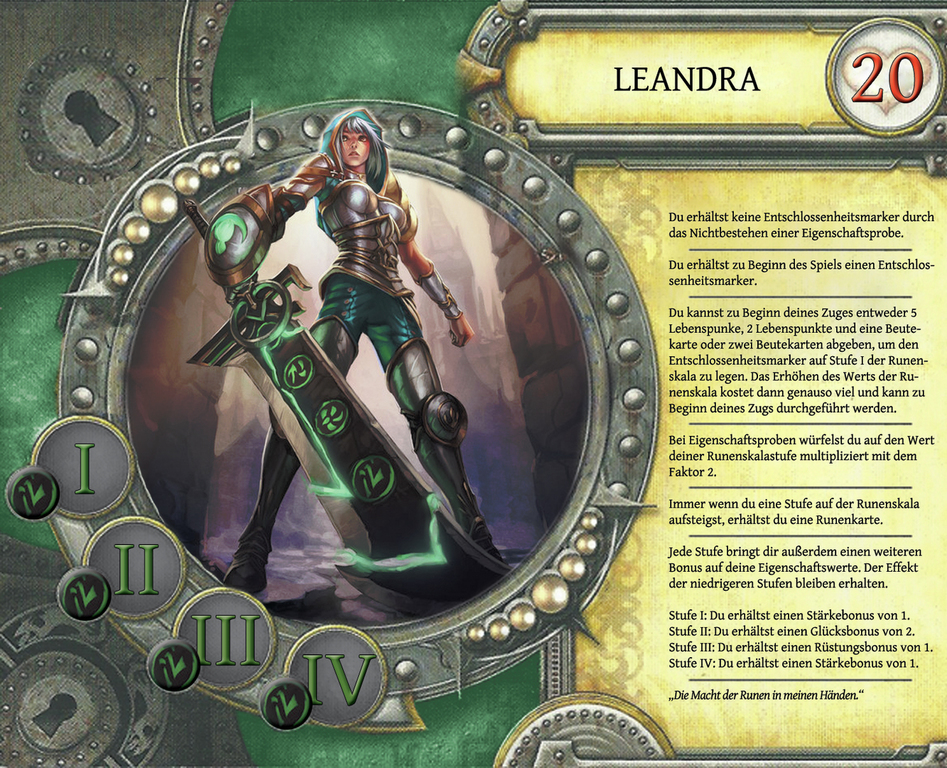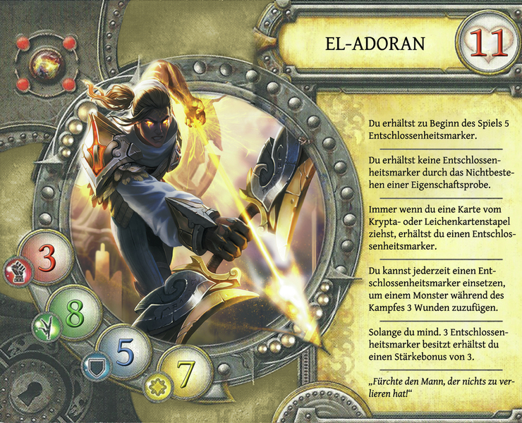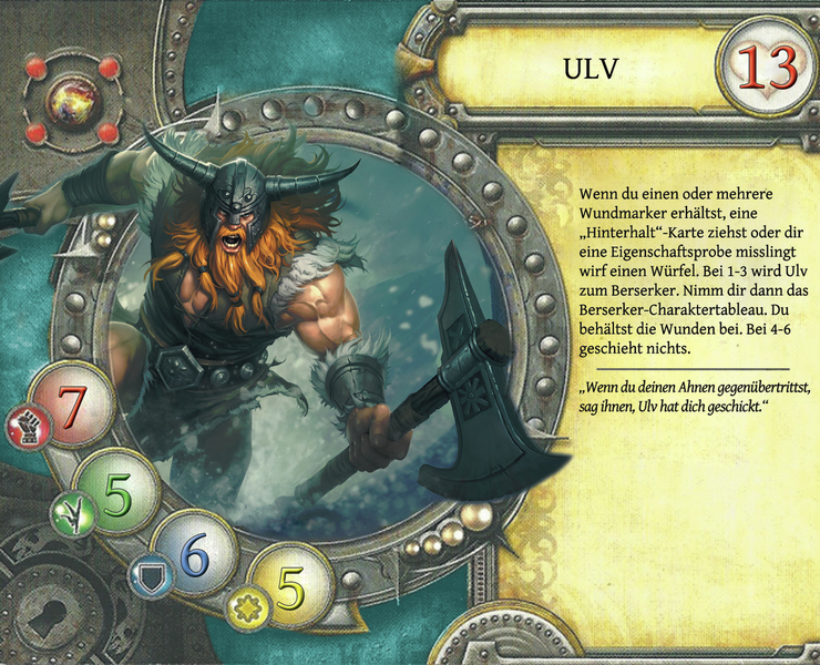 Aus Interesse an der Gestaltung des Spiels und weil ich nur ungern auf die bereits lieb gewonnenen Charaktere des Ursprungsspiels verzichte, habe ich mich dazu entschlossen, die alten Helden wieder in das neue Spiel zu integrieren. Dadurch wurde ein Redesign erforderlich, da sich sowohl das Regelwerk als auch die Gestaltung der Charaktertableaus verändert haben.