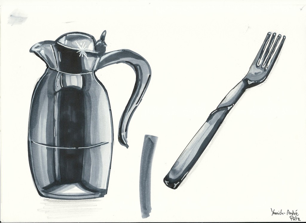 Obwohl ich hauptsächlich einfache Skizzen wie beispielsweise bei „Equilibrium“ anfertige, habe ich mich ebenfalls mit der Illustration von Objekten auseinandergesetzt, um dadurch ein Gefühl für dreidimensionale Objekte zu erhalten.