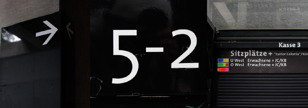 Im Verlauf des fünften Semesters an der AKD habe ich an einem neuen Leitsystem für das RheinEnergieStadion in Köln gearbeitet. Die auf dieser Seite präsentierten Fotografien zeigen das bisherige Leitsystem des Stadions.